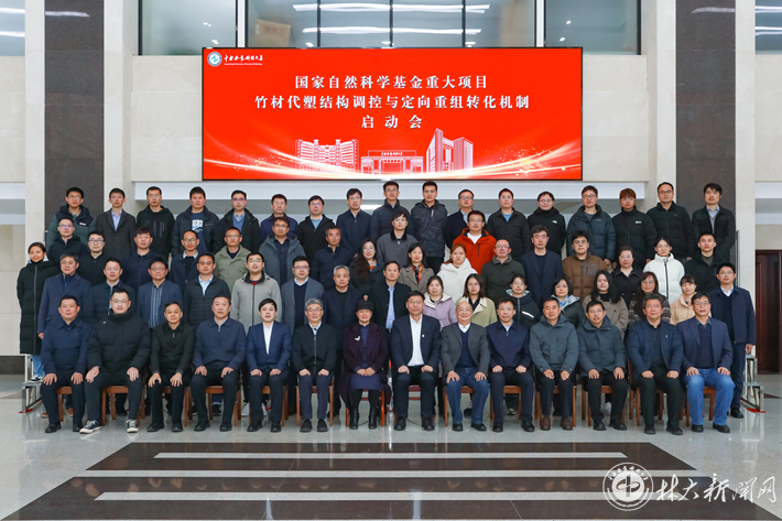 ▲国家自然科学基金重大项目“竹材代塑结构调控与定向重组转化机制”启动会在我校召开