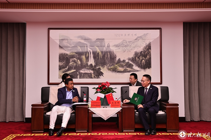 访问期间,兰德里亚纳索洛与在校的2名马达加斯加留学生进行了亲切交流。