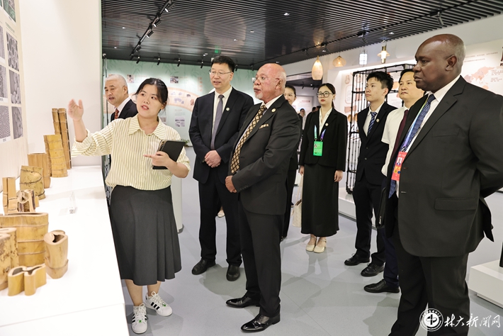 座谈会上,吴义强详细介绍了学校在竹木资源高值化利用、“以竹代塑”技术、生态修复等领域的研究成果。他表示,乌干达丰富的竹资源与学校在竹产业技术领域的创新优势高度互补,双方合作潜力巨大。学校愿以竹为媒,与乌干达Makerere大学共建“一带一路”联合实验室、共同实施“竹业英才计划”、共同推动产业链对接。