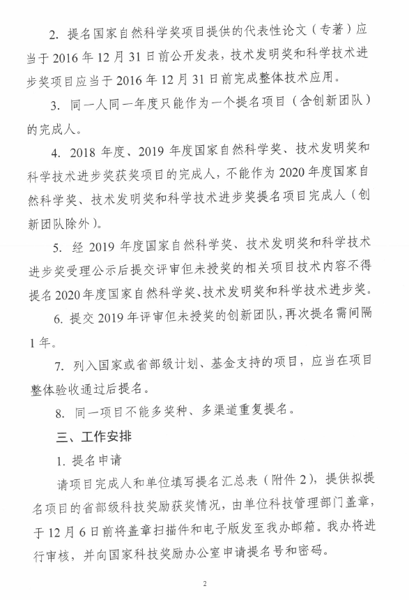 1. 12月5日下午下班前将附件2《国家科学技术奖提名汇总表》发送至科技处指定邮箱,用于申请提名项目网络填报的账号和密码。