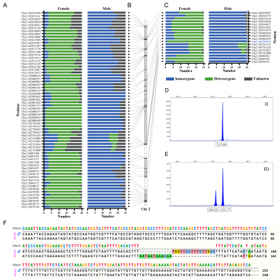 基于21个物种直系同源单拷贝基因和基于101个物种直系同源低拷贝基因集的串联树和溯祖树的构建,厘清了一直存在争议的COM分支的系统发育位置,即COM中的三个目(卫矛目、酢浆草目和金虎尾目)归于锦葵类(Malvids)而不是豆类(Fabids),且这三个目并未归于同一个演化支上。通过千年桐雌、雄群体全基因组重测序数据,利用性别性状进行全基因组关联分析,筛选到3个大小分别为2.076、3.291和28.29 kb的性别高度相关区域。这些区域中的SNP和InDel在大多数雄株中为纯合型,而在雌株中为杂合型。基于重测序数据的变异检测及基于毛细管凝胶电泳检测结果,其中有一个性别显著相关的InDel位点在雄株中均为纯合型,而在雌株中为杂合型,据此开发了一个InDel多态性分子标记,通过分别随机选取50株雌雄材料进行荧光标记毛细管电泳检测,雄株田间表型与基因型检测一致率为100%,雌株一致率为96%,从而实现了千年桐植株性别的快速准确检测。此外,该InDel位于VmBASS4的第二个内含子区域,暗示VmBASS4可能在千年桐性别决定中发挥作用。这项研究将有助于全面解析千年桐性别决定机制,为其重要农艺性状解析和基因组辅助育种研究提供基础。
